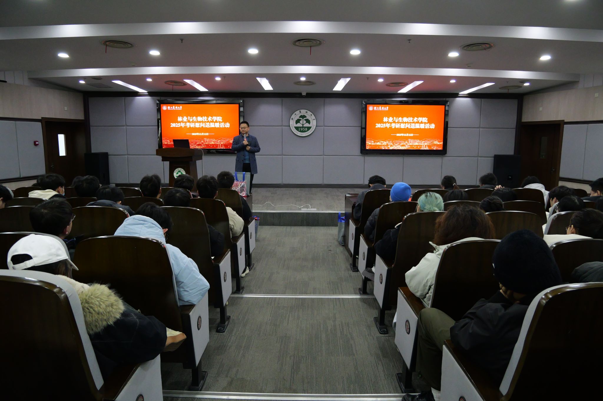 活动现场,学院党委副书记潘军可首先进行了动员讲话。他向在座的同学们分析了今年的考研形势,介绍了学院学生往年的考研上线情况及今年的招生计划,同时从备考方法、身心状态和考前准备三个方面对同学们作出细致叮嘱:一是要制定计划,在最后的冲刺阶段稳步前行,以不懈的努力和必胜的信念积极备考;二是要注意饮食、保重身体,预防流感等疾病,在考前调整好身心状态,保持稳健的复习节奏;三是提前备齐考试证件,做好各项事务准备,确保以最佳状态迎接考试。他表示,考研不仅是对知识的考验,更是对毅力和决心的磨练,希望同学们在备考的道路上勇往直前,不畏困难,学院也会做好全方位的保驾护航工作,祝福学子们都能够取得优异的成绩。