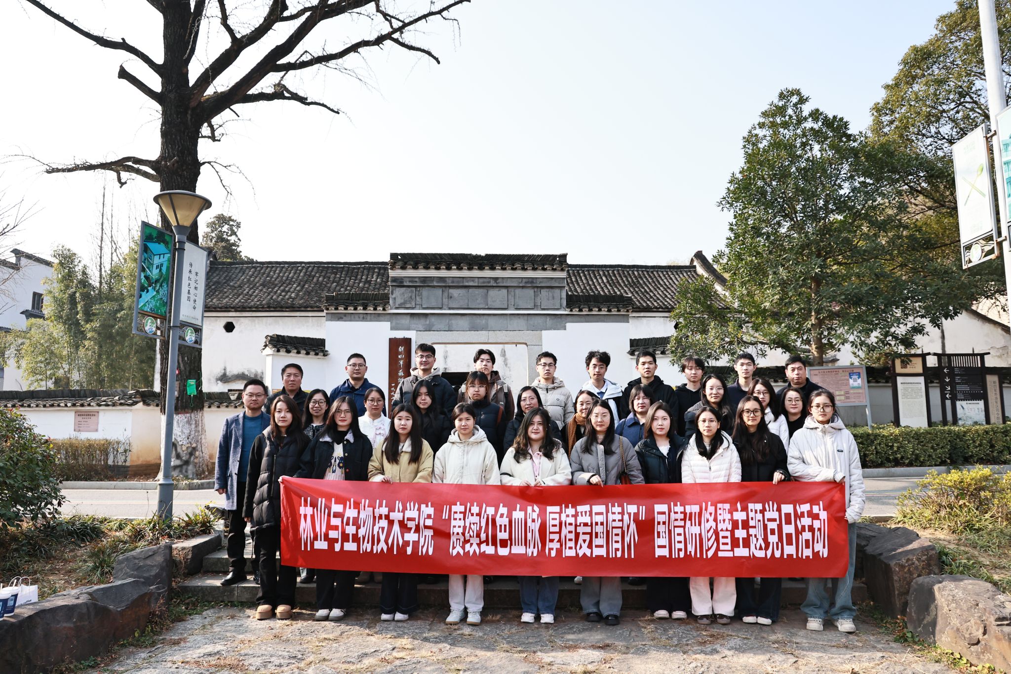 12月11日上午,学院组织教工和学生前往湖州市长兴县新四军苏浙军区纪念馆及司令部旧址开展“赓续红色血脉 厚植爱国情怀”国情研修暨主题党日活动,在“江南小延安”长兴县新四军苏浙军区旧址群,重温铁军峥嵘岁月,汲取立德树人、强农兴林的奋进力量。