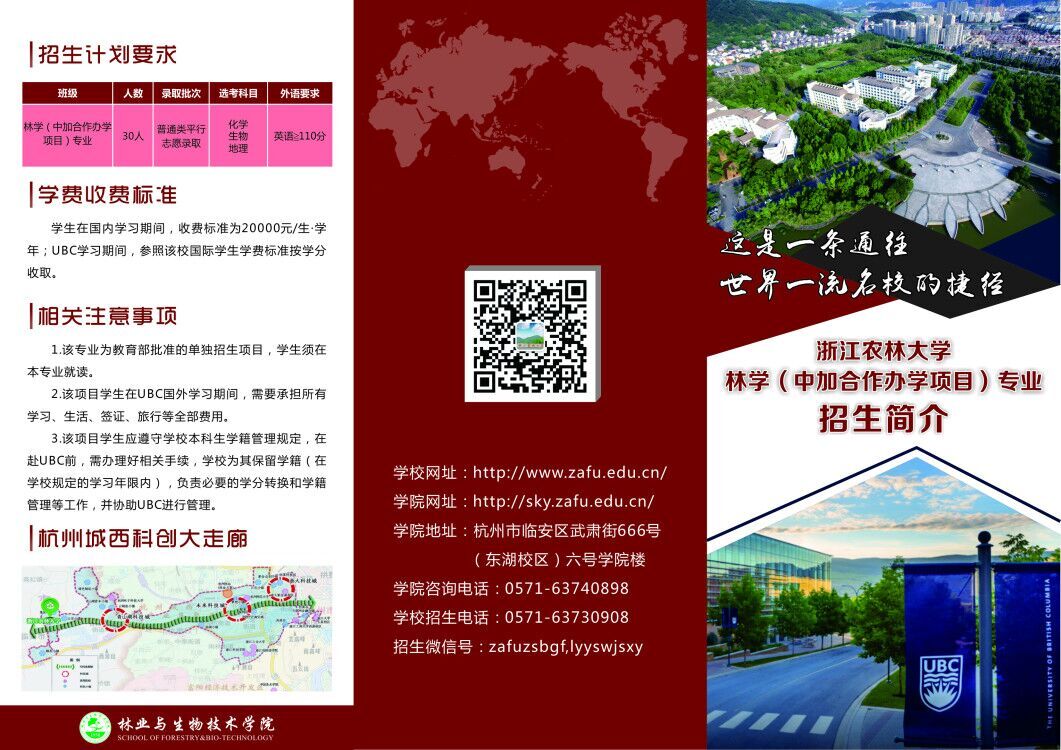 经教育部批复(编号MOE33CA2A20131591N),金年会诚信信誉至上和加拿大不列颠哥伦比亚大学(以下简称UBC)从2014年开始合作举办林学专业本科教育项目,简称林学(中加合作办学项目)专业。