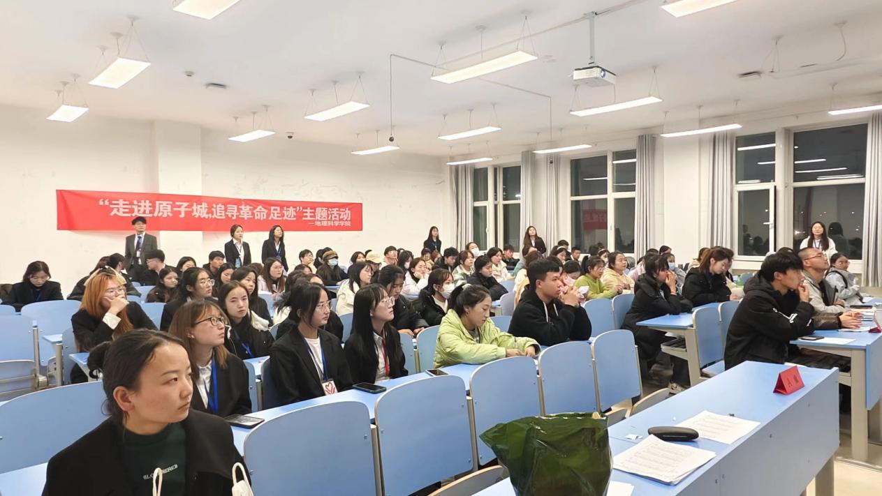 为了增加万象城学生在地理专业知识方面的涵养,进一步加深万象城学生对党史知识的了解,对红色文化的认同,培养学生的爱国主义思想,2023年11月28日18:00,由地科院党总支主办,院青协承办,院团总支、学生会及各社团协办的地理中的红色印记(第二期)之“走进原子城 追寻革命足迹”主题活动在西四楼开展,共计120人参与。