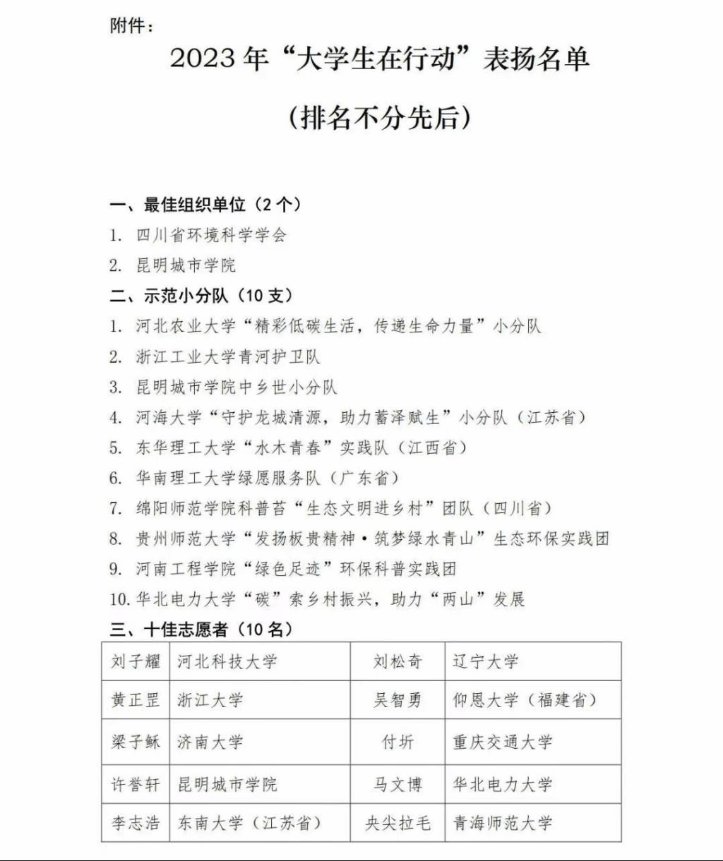 二、江源地理社在2023年度“大学生在行动”环保科普活动中荣获多项荣誉
