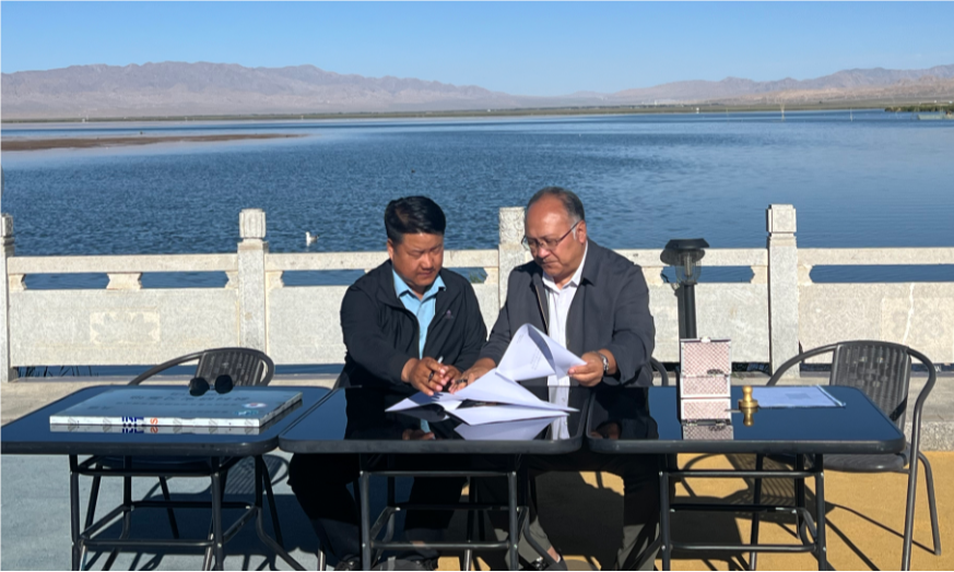 2024年8月21日,allwincity万象城官方网站与海西州可鲁克湖旅游开发有限公司共建教科研实习基地签约揭牌仪式在可鲁克湖景区举行。学院党总支书记洛加才让与海西州可鲁克湖旅游开发有限公司负责人及部分工作人员、学院金鑫、金彦香老师和部分研究生参加了此次活动。