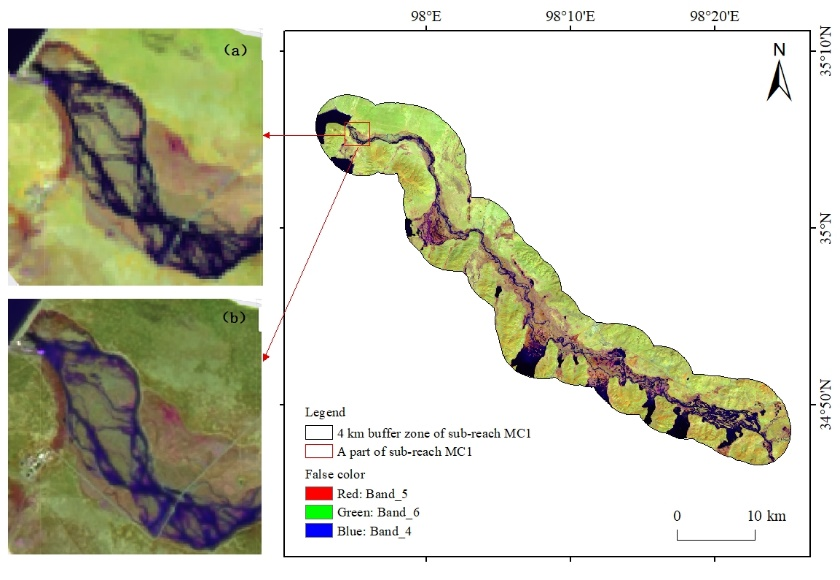 黄河流域是中国西北和华北地区最大的水源,承担着全国15%的耕地灌溉面积和9%的全国人口供水量。黄河上游是其主要产水区,其河流形态丰富、复杂。近几十年来,黄河上游经历了显著的气候变化以及梯级水电开发,其水资源发生着一定程度的变化。黄河上游河流形态变化可能对周围乃至全流域生态环境和社会产生多方面的影响。目前遥感技术仍存在低空间分辨率影像对复杂水体的空间细节捕捉不足以及高空间分辨率影像对大区域尺度水体监测的空间覆盖范围和重访周期不足的问题。