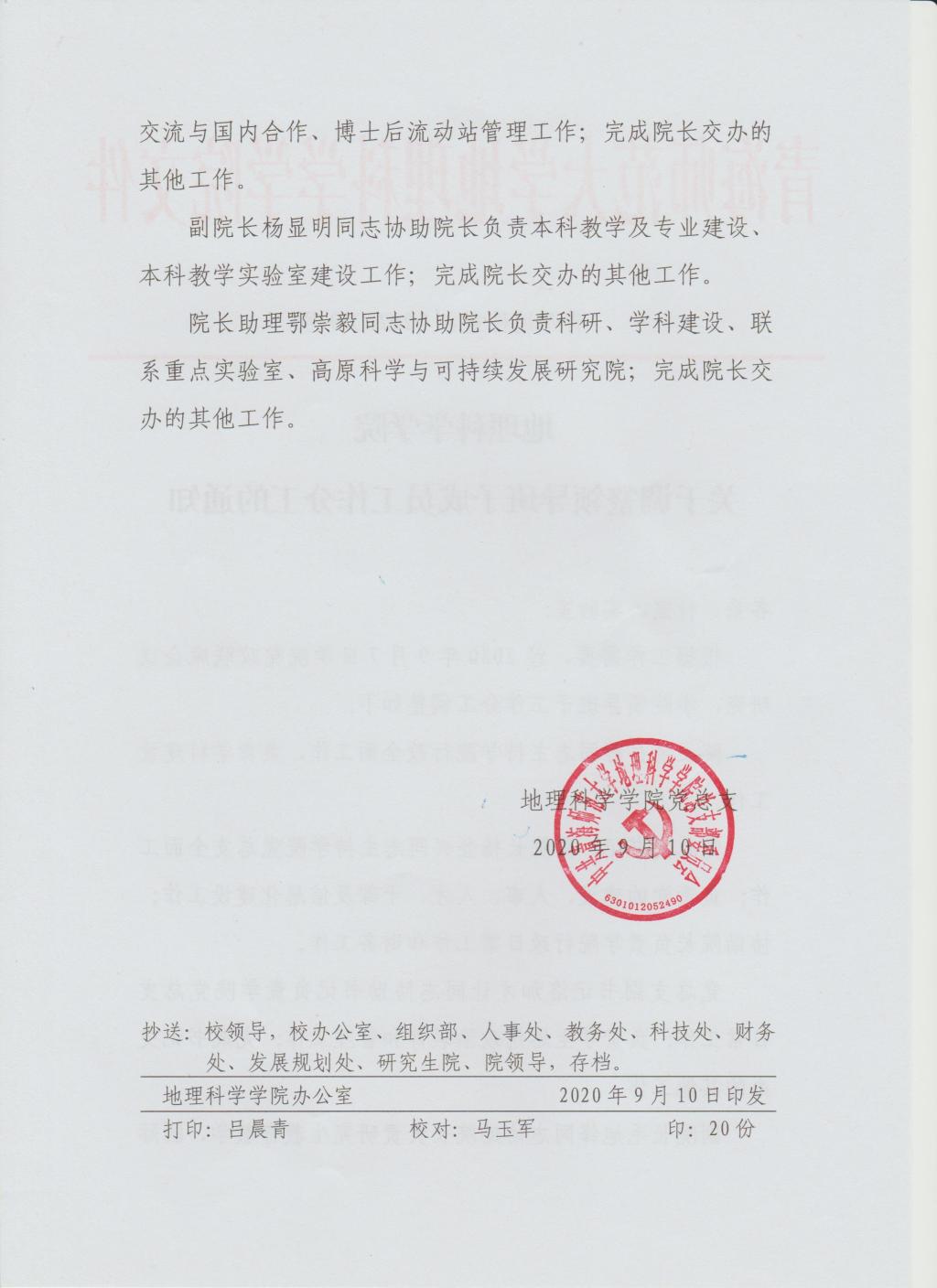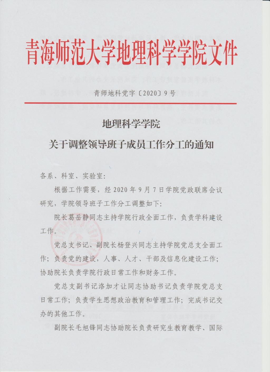 关于调整领导班子成员工作分工的通知