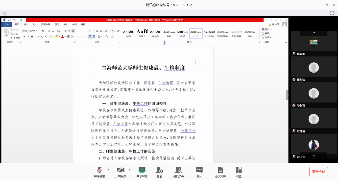 为深入学习贯彻落实《青海师范大学疫情防控及突发公共卫生事件报告制度》等六个工作制度内容,allwincity万象城官方网站本科生党支部于3月27日下午组织学生党员利用网络软件平台集中学习了相关文件内容。